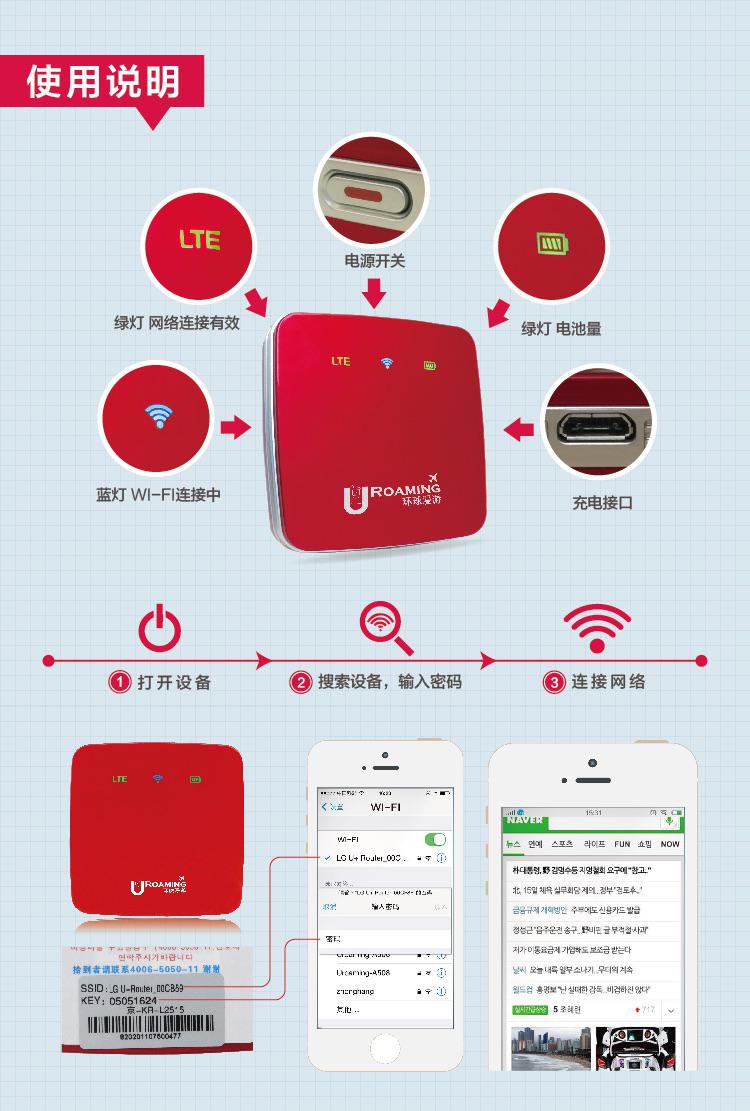* 租赁的设备全部都是韩国最大运营商提供的设备 信号强,覆盖范围广,4G网络